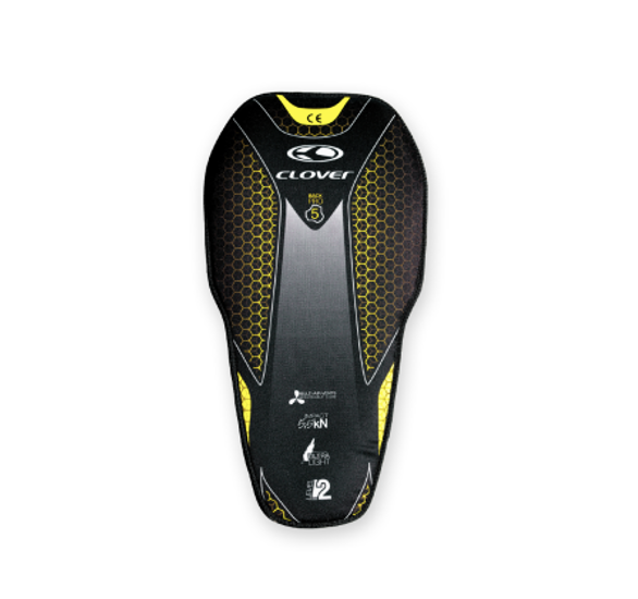 Protector de espalda para insertar en el bolsillo apropiado de las chamarras Clover (ver tabla de tallas). Reduce aproximadamente 9 veces la energía de impacto. Valor promedio de la energía residual transmitida durante la prueba: 5.5 kN | • Ultra ligero • Orificios de ventilación y forro de malla tridimensional. La malla 3D crea un espacio entre el protector de espalda y el cuerpo, permitiendo una mejor circulación de aire • Flexible y anatómico • Ajuste elástico de tirantes y cintura • Sin costuras en la espalda y sin plástico rígido • Certificado CE EN 1621-2: 2014 Nivel 2 • Nota: La talla del protector de espalda depende del modelo y de la talla de la chamarra para que se inserte en el bolsillo apropiado